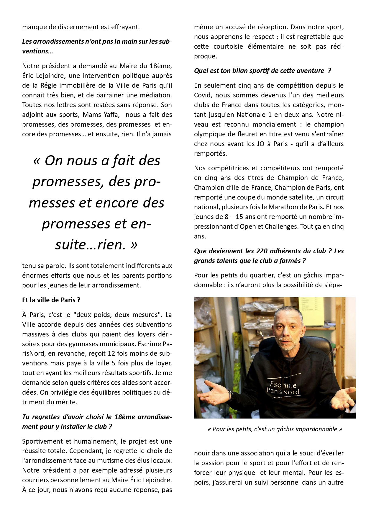 Escrime ParisNord a la chance d’avoir un grand nombre de Seniors expérimentés qui accompagnent les jeunes et les coachent. Ils savent comment on se sent sous le masque en face d’un adversaire et savent comment aider, rassurer et coacher les jeunes. Soutenons nos enfants, mais laissons les coaches faire leur travail.